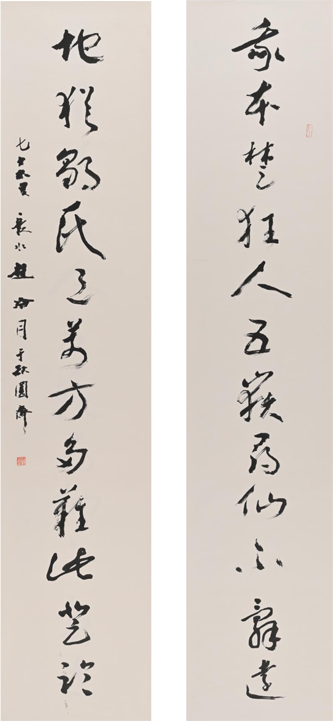 草书 十二言联 尺寸:231×51厘米×2 1990年