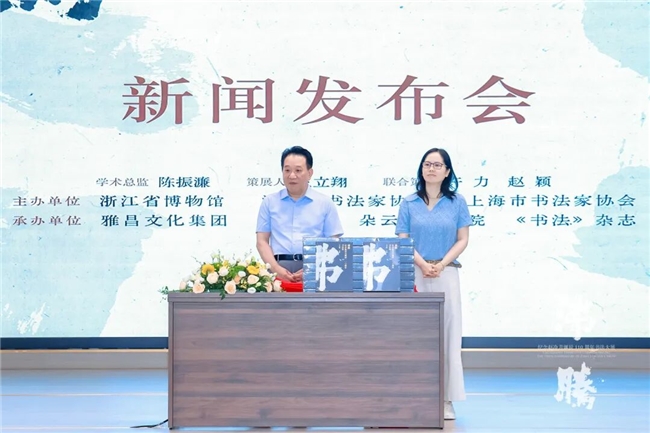 浙江省博物馆党委书记、馆长纪云飞,中国书法家协会理事、书法评论与文化传播委员会副主任、朵云轩书画院院长、本次展览策展人王立翔分别致辞。中国文学艺术界联合会副主席、西泠印社副社长秘书长、本次展览学术总监陈振濂宣布展览开幕。新闻发布会由浙江省博物馆副馆长许洪流主持。