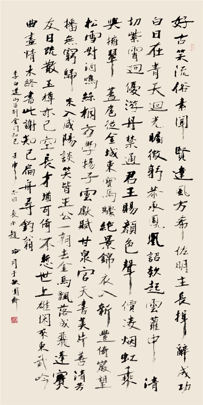 行书 李白《还山留别金门知己》 尺寸:247×123厘⽶ 1992年