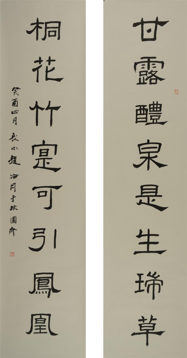 隶书 八言联 尺寸:244×62厘⽶×2 1993年