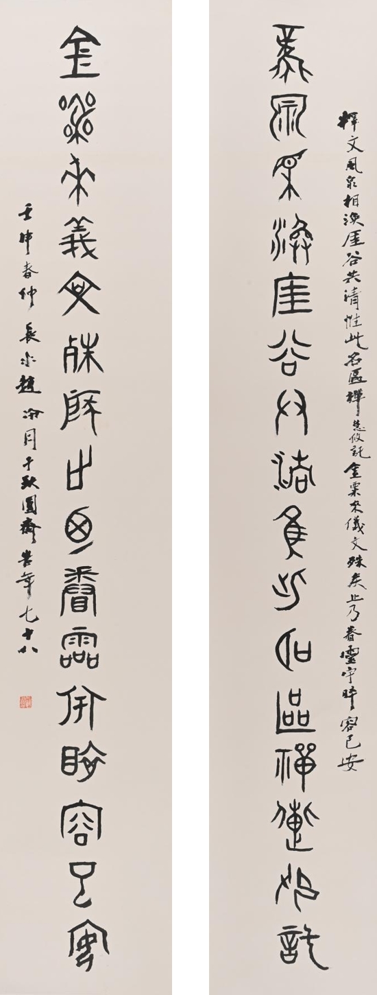 篆书 十六言联 尺寸:234×41厘米×2 1992年