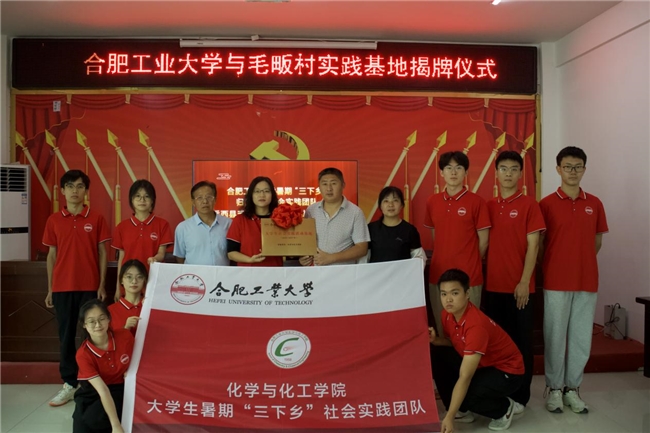 近日,合肥工业大学与安徽省安庆市岳西县菖蒲镇毛畈村共建的“大学生社会实践活动基地”揭牌仪式在毛畈村村部隆重举行。镇党委干部、村书记兼村主任姚有志,支委干部、副主任王业海,支委干部、监督委员会主任严淑芳,村委干部彭素霞、姚仙应,大学生回归工程人员陶涛,合肥工业大学化学与化工学院教授兼暑期三下乡“归雁领航”实践团队指导老师孙敏,三下乡团队代表陈文杰以及相关人员参加了揭牌仪式。