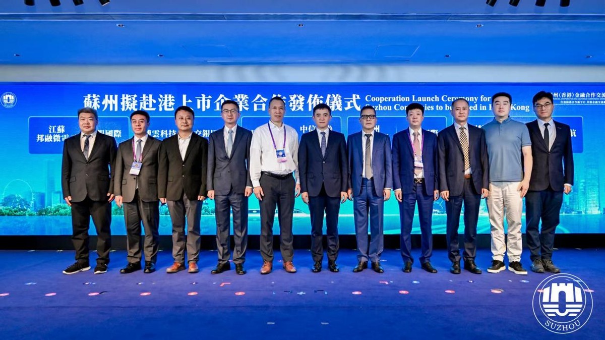 交流会上,科技金融国际合作(苏州)发展区“苏州香港双中心”和苏港联合路演中心正式揭牌。