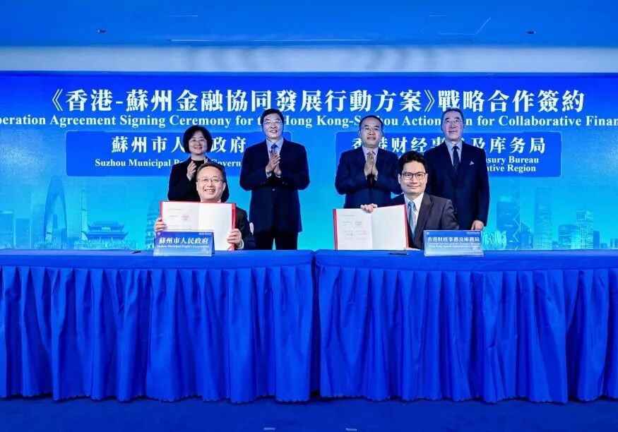 (9月9日)上午,苏州(香港)金融合作交流会在香港成功举办。香港财经事务及库务局与苏州市人民政府正式签署《香港—苏州金融协同发展行动方案》,通过22条具体举措聚焦金融服务实体经济,共筑跨境金融合作新格局。