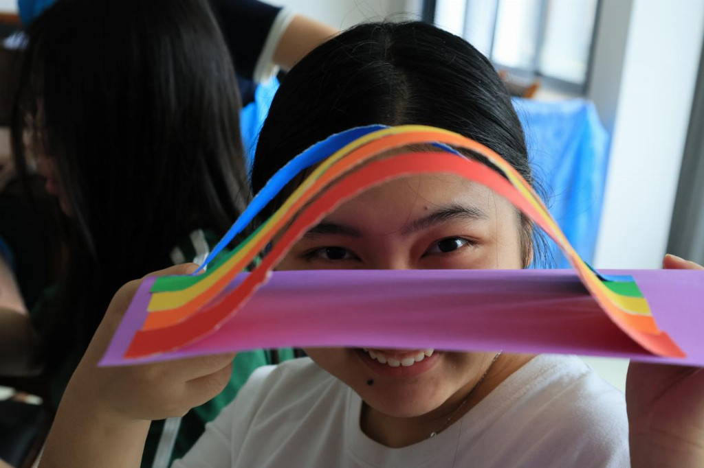 图6:实践团成员展示手工制作的“彩虹桥”