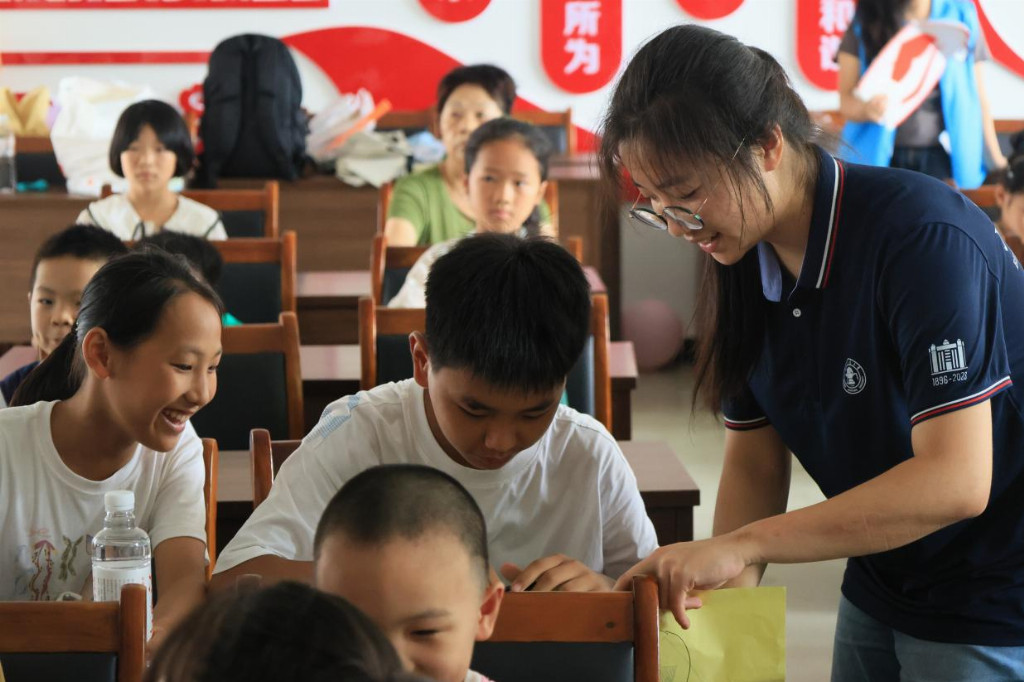 图2:“湘遇·启航”主题课堂上,实践团成员带领小朋友们进行破冰游戏