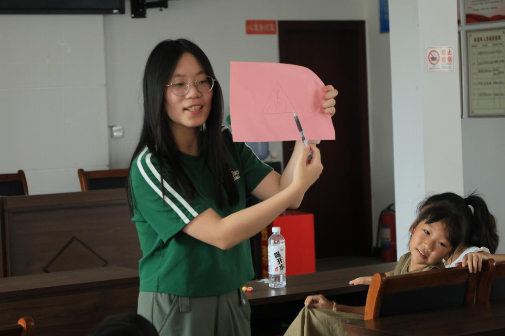 图3:“湘遇·启航”主题课堂上,实践团成员正在科普交通知识