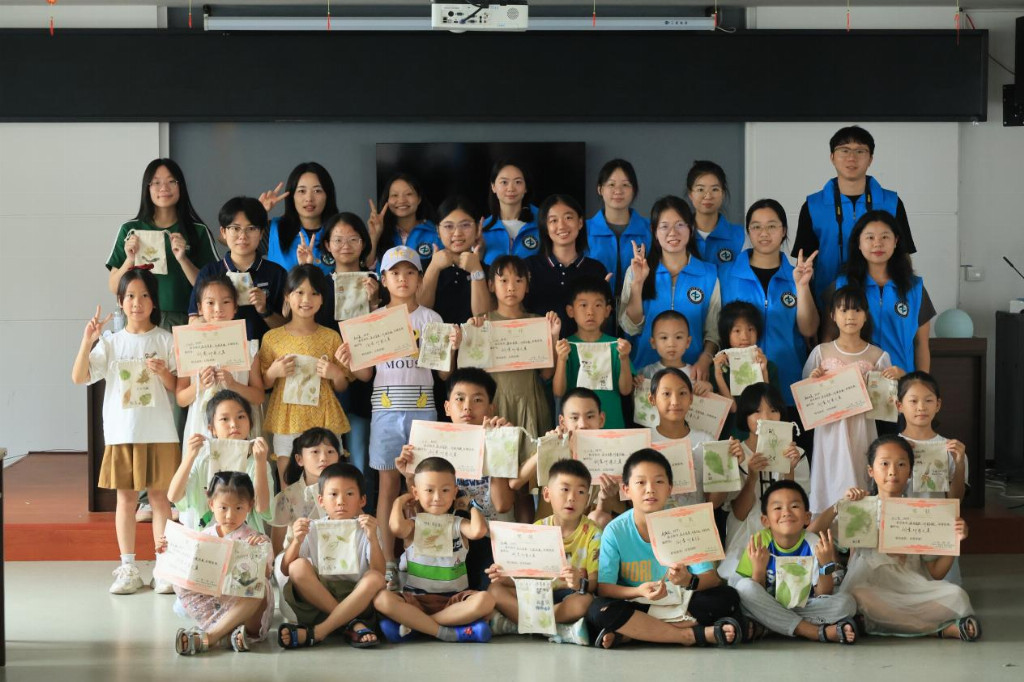 图1:北京交通大学实践团成员与中南林业科技大学实践团及小朋友们合影