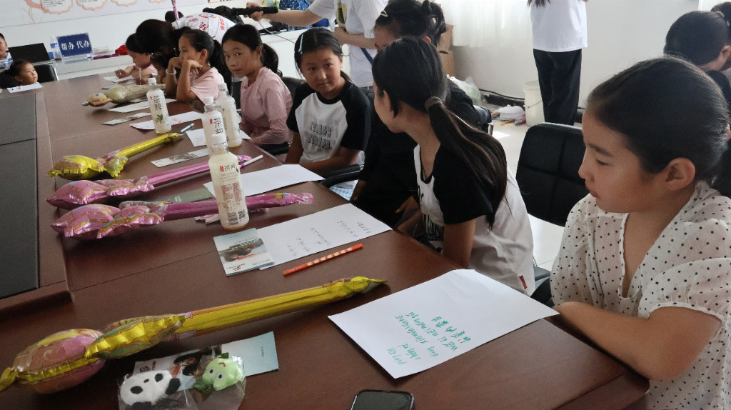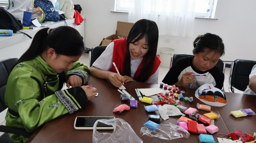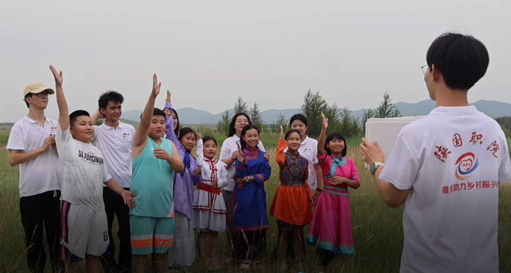 团队以普通话为文化交融媒介,精心策划特色活动,致力架设汉蒙民族“连心桥”。“文化翻转课堂”上,蒙古族孩子和村民变身“小老师”,先教实践团蒙语词汇与民族故事,再用普通话转描述分享。 例如,孩子教授蒙语“乌力吉”(意为吉祥),成员学会后即用普通话诠释其意并送上祝福。双向教学,深度促进文化互鉴。