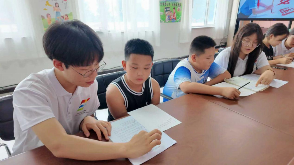 ▲图为实践团组织和指导汉字书写比赛