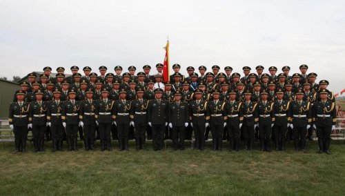 (图:许文斌、于洋与受阅队员合影)