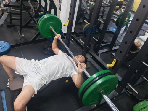 另一边,另一位安全员正躺在卧推架上进行杠铃卧推训练。他调整好呼吸,双手握住杠铃,慢慢将杠铃向上推起,再缓缓放下,重复着这一动作。杠铃卧推主要锻炼胸肌、三头肌等部位,对于安全员在遭遇暴力威胁时,进行有效的格挡、推搡等动作有着重要的作用,能够提升他们在对抗中的优势。