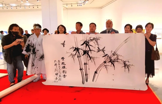 开幕式上,刘坤代表中国入选参展艺术家致辞,并与韩国知名书法家李洪宰联袂创作,在瀚墨书香中共同传承书法艺术的生生不息,传达中韩两国书画艺术家对扩大民间文化交流、深化艺术融合发展的期许。