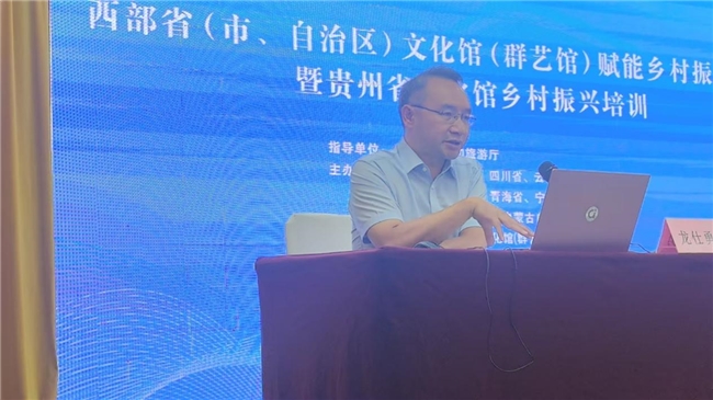 9 月 10 日上午,西部省(市、自治区)文化馆赋能乡村振兴主题交流活动举行。交流由贵州省文化馆党委副书记、馆长龙仕勇主持,各省区市代表围绕 “乡村振兴和文旅融合背景下文化馆职能彰显” 主题依次发言。广西壮族自治区群众艺术馆副馆长韦佳在发言中表示,此次培训以 “文化赋能乡村振兴” 为主题,切入点新颖且贴合实际,既有各个地区的实际案例,又有具体的政策依据,为各地分享经验、互学互鉴搭建了优质平台;内蒙古文化馆、青海省文化馆等地区代表也先后分享了本地在挖掘民族文化资源、推动文旅融合等方面的实践案例,现场交流氛围热烈,思想碰撞频繁。当天下午,贵州师范大学教授、贵州省乡村旅游发展中心主任张晓松以 “地域文化品牌打造与乡村旅游融合发展” 为题开展授课,结合贵州本土案例,详解如何将地域文化优势转化为乡村旅游发展动能。