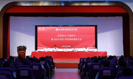 9月10日下午,江西软件职业技术大学在学术报告厅举行庆祝第41个教师节暨2024-2025学年教师表彰大会,大会主题“以教育家精神铸魂强师,谱写教育强国建设华章”。党委书记、督导专员饶勇,校党委副书记、执行校长范红铭等在家校领导及中层干部、全体获表彰教职工、各职能部门职工代表等参加会议。会议由校务委员傅志军主持。