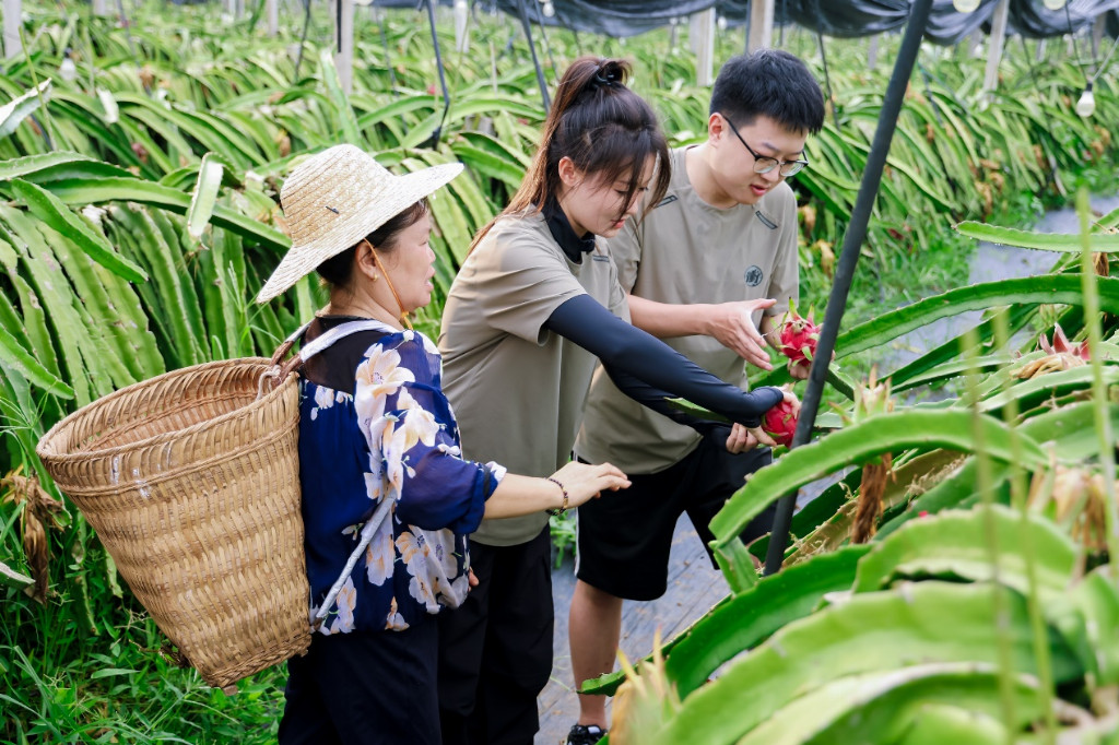 图1:玩家代表与火龙果果农一起体验丰收的快乐
