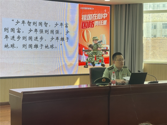 今年9月20日是第25个全民国防教育日,主题是“弘扬抗战精神,共筑国防长城”。姚警官通过视频、图片和互动问答等方式,带领同学们回顾了中华民族从屈辱到自强的艰辛历程,讲述了抗战胜利、国家发展、军队强大的故事。