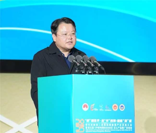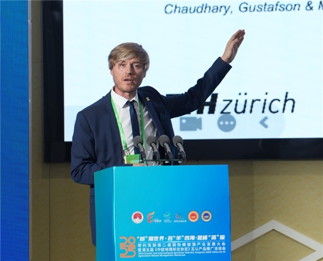 苏智雄在发布会上致辞。他向前来赴会的海内外贵宾及深耕这片领域的海内外专家学者表示欢迎和感谢。向长期以来关心支持鄂托克发展的各界朋友表示衷心感谢。他说,鄂托克旗以铸牢中华民族共同体意识为主线,紧紧围绕国家重要农畜产品生产基地建设和全市一产重塑计划,依托黄金北纬38°生态禀赋和“中欧地理标志互认”品牌优势,深耕“阿尔巴斯山羊绒、阿尔巴斯山羊肉、鄂托克螺旋藻”三大特色产业,致力于打造世界绒都、绿色肉都、高原藻都。希望以本次大会为契机,与前来的专家学者、企业家同心携手,共建“产学研用深度融合、国内国际双循环畅通”的现代农牧业发展新范式,共创合作共赢的美好明天。