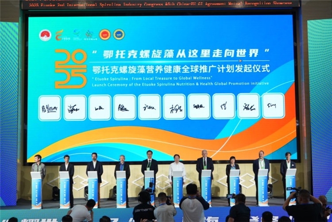 “一件羊绒,轻若鸿羽,一块羊肉,醇厚绵长,一株螺旋藻,微小如星辰”,会上,鄂托克农牧推介官何欣进行了《“绒”耀世界·名“羊”四海·登峰“藻”极》中欧互认品牌及产业发展整体推介。与会领导、专家学者共同签署了“鄂托克螺旋藻营养健康全球推广计划”,这份推广计划,将成为草原与世界、科学与产业之间的重要桥梁,让鄂托克螺旋藻在全球健康领域熠熠生辉。