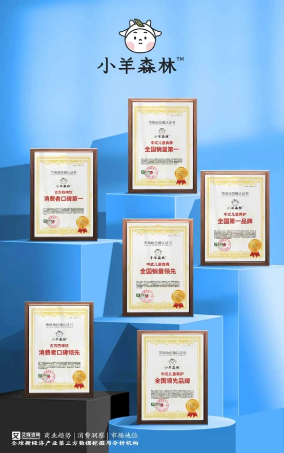 基于艾媒自主研发并获得省部级重大科技专项立项的CMDAS大数据系统监测及严格的调查,以及对中国(不含港澳台)中式儿童食养、养护及古方四神饮消费者口碑市场研究比对的结果进行统计确认,小羊森林荣获全球领先的新经济产业第三方数据挖掘和分析机构iiMedia Research(艾媒咨询)授予“中式儿童食养全国销量第一”“中式儿童食养全国销量领先”“中式儿童养护全国第一品牌”“中式儿童养护全国领先品牌”“古方四神饮消费者口碑第一”“古方四神饮消费者口碑领先”六项市场地位确认。