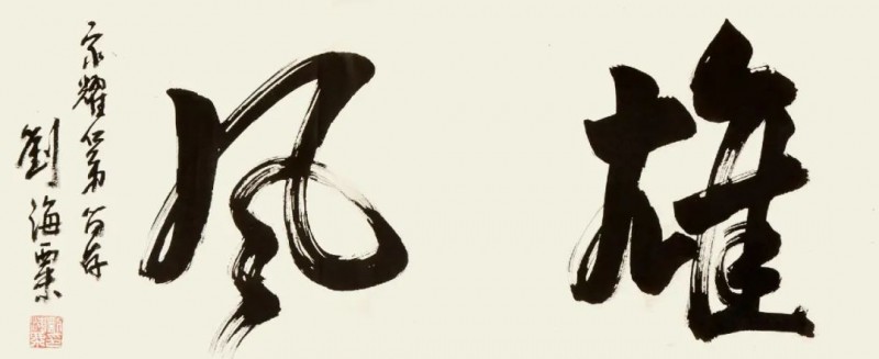 李家耀旧藏:刘海粟 《行书“雄风”》,原装旧裱镜心,刘海粟好友、马来西亚已故华人李家耀旧藏,并带有其上款。