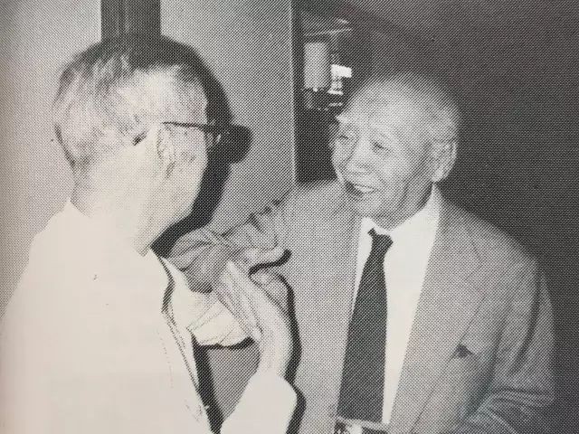 1987年6月2日,李家耀拜見劉海粟於新加坡博物館主辦之《劉海粟大師畫展》。