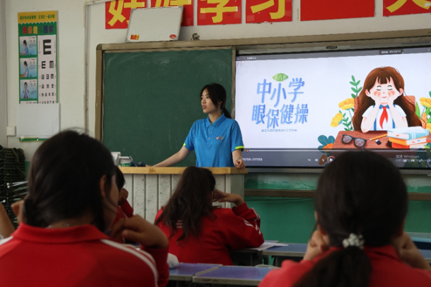 我们把推广普通话宣传册发放到孩子们手中,手册封面印着一行小字:“普通话里,也藏着家乡的故事”。翻开内页,日常用语规范旁配着简单的插画,普语小知识里藏着小互动,而中医药养生和眼健康小贴士,则像贴心的叮嘱,悄悄藏在字里行间。讲到中医药文化里 “枸杞”“茯苓” 的标准读音,他们跟读的声音,在乡土间荡起文化传承的波。我们将道地药材铺展,教孩子们用标准普通话讲述 “枸杞红于塞上秋” ,把药材对应省份绘成地图,让语言与文化同频;“紫苏叶、陈皮丝,装进香囊驱湿气……”,我们用普通话讲解药材名、制香囊步骤,孩子们边学发音,边捏起药材。指尖摩挲艾叶的糙,轻嗅薄荷的凉,一个个香囊成型,像文化的小灯笼,照亮普语推广与传统知识传递的路;顺口溜 “眼离书本一尺远,身离课桌一拳间” ,在童声复述里,种下守护光明的种子。眼保健操教学,“按揉睛明穴”“刮上眼眶”的口令,是健康习惯与规范语言的双向奔赴。