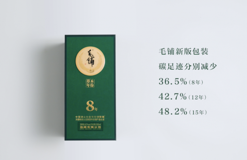 近日,毛铺草本年份酒包装再次换新,通过工艺优化与升级,实现不同年份产品碳足迹减少36.5%至48.2%。