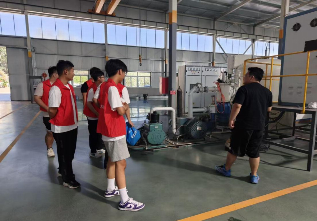 在锦州天泰金属粉末加工有限公司的车间内,企业技术人员正为实践团队详细介绍真空熔炼炉的工作原理与技术优势。同学们认真聆听、仔细观察,在专业设备的实景讲解中,对金属粉末的高端制备工艺有了更具象的认知,这场一线技术讲解也为他们的“三下乡”实践学习添上了浓墨重彩的一笔。