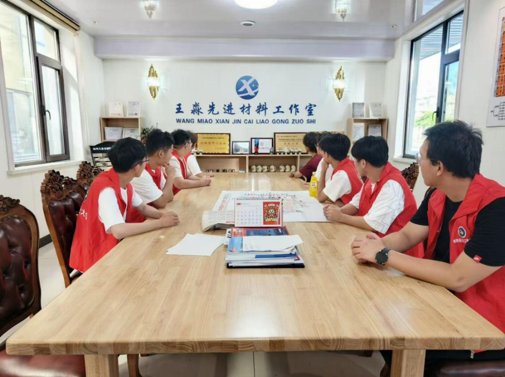 在“王淼先进材料工作室”,“金合探微"实践团队深入了解企业获得的荣誉与满室的技术资料,见证着校企双方在专业交流中碰撞思想火花,为学子们拓宽行业视野、明晰专业发展路径提供了宝贵的交流平台。