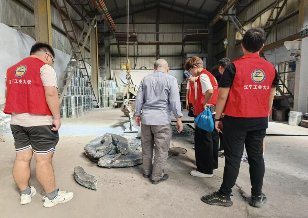 在企业车间内,老师傅正为实践团队细致讲解钒铁矿的加工工艺、性能特点及产业价值。同学们围站在钒铁矿样本旁,在老师傅的专业解说中,近距离感知钒铁矿从原料到加工的全流程知识,这场一线教学让他们对钒铁矿产业的实际生产有了更深刻的理解,也为“三下乡”实践学习注入了扎实的产业认知养分。