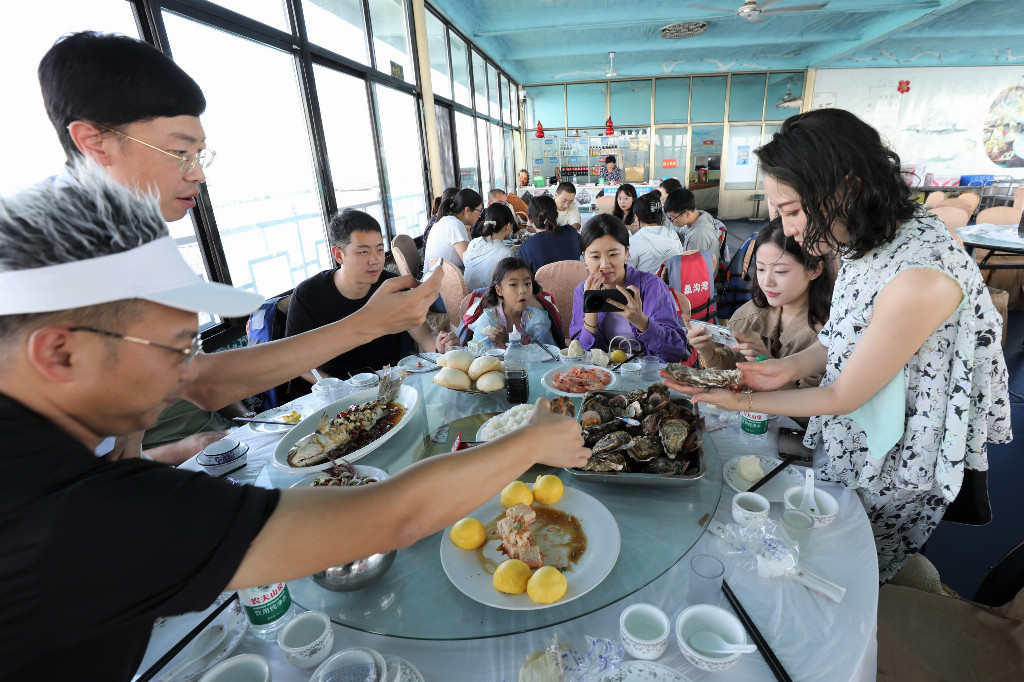 海鲜采摘之后,一顿地道的渔家宴成为另一大亮点。位于海中央的豚趣餐厅可同时接待300多人用餐,以现捞海产和本地农产品为原料,既鲜美又地道,让人在品味美食的同时,也感受到淳朴浓郁的渔家风情。