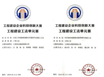 9月7日至9日,第七届工程建设行业科技创新大会在常州召开,会上对2025年举办的第五届工程建设企业科技创新大赛获奖成果进行了表彰。上海宝冶长春分公司在此次大赛中表现卓越,在“工法单元赛”中斩获2项荣誉。
