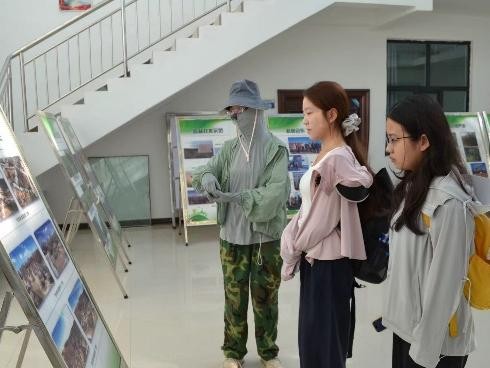 图:“青衿筑绿·塞上先锋”实践团队员参观青海省治沙试验站展厅