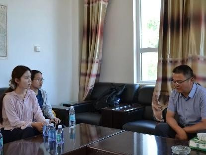 图:“青衿筑绿·塞上先锋”实践团队员与青海省治沙试验站副站长赵雪彬交谈