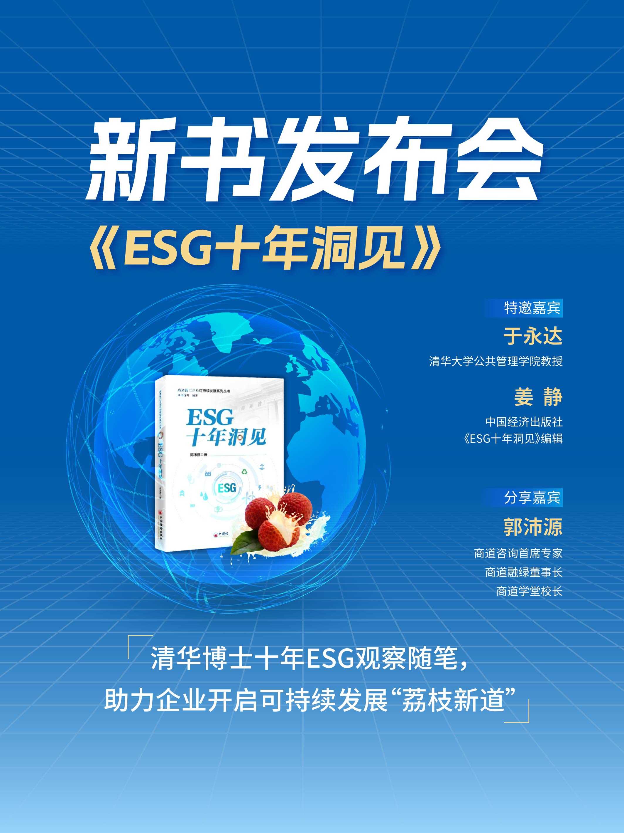 (2025年9月15日,北京)日前,商道咨询成立20周年的重要ESG知识产品,商道咨询首席专家、商道学堂校长、商道融绿董事长郭沛源博士最新出版的财经观察随笔、ESG科普著作——《ESG十年洞见》新书发布会在线上成功举办。郭沛源博士与特邀嘉宾清华大学公共管理学院于永达教授、中国经济出版社《ESG十年洞见》编辑姜静共同参与,探讨中国ESG发展脉络,助力企业开启可持续发展的“荔枝新道”。