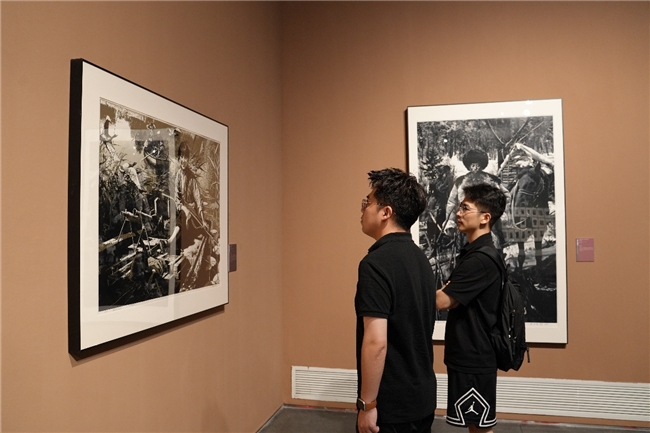 在庄严肃穆的展厅内,双方单位的参观队伍仔细观摩了每一件展品。一幅幅诞生于抗战时期的木刻版画,黑白分明、刀锋遒劲,生动刻画了前线将士英勇杀敌的悲壮场面、后方民众踊跃支前的感人场景以及日寇暴行下的苦难与挣扎。那些以艺术为武器的中国前辈版画家们,将刻刀化作锋利的投枪与呐喊的号角。所创作的抗战经典版画,正是那段血与火岁月最震撼的视觉史诗,与配合展出的历史文献、老照片及实物复制件,共同构建了一段段可歌可泣的历史记忆。
