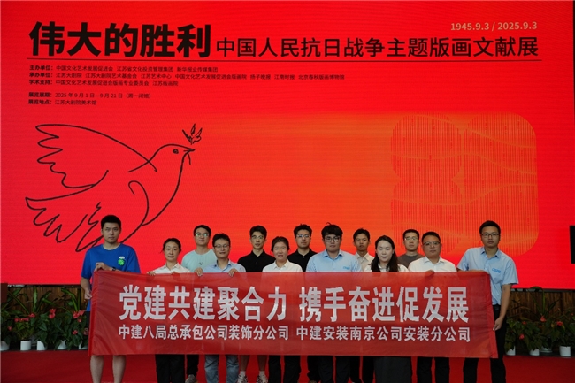 为缅怀革命先烈、传承红色基因、汲取奋进力量,中建八局总承包公司装饰分公司与中建安装南京公司安装分公司开展党团联建,于近日下午组织青年员工,共同前往江苏大剧院美术馆,参观了《伟大的胜利——中国人民抗日战争主题版画文献展》。