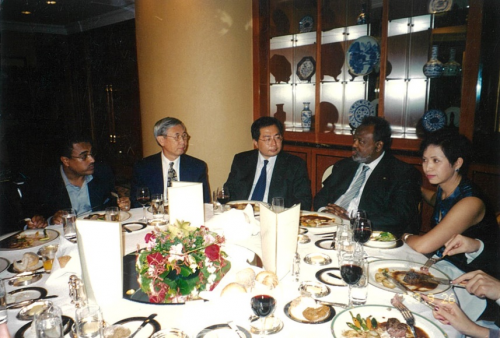 肖武男(左三)与时任吉布提总统哈桑·古莱德·阿普蒂敦(右二)在香港会晤