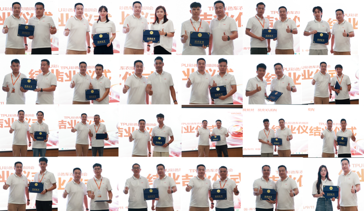 继8月份广州首站培训树立行业新标杆后,9月11日,中膜新材旗下酷变KUBN品牌将“纯学习·不收费·不卖货·无政策”的赋能模式成功复制至广西。本次培训在保留广受好评的六大干货课程体系基础上,创新增设明星门店实战分享、朋友圈集赞送TPU彩膜、授权店匾额颁发三大环节,通过“知识输入+案例输出+社交裂变+身份认证”的全新闭环,将品牌赋能深度再次推向新高。
