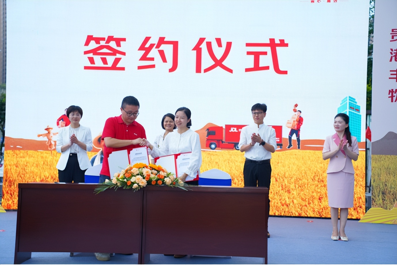 启动仪式上,北京京东世纪贸易有限公司与贵港市新发展投资集团有限公司签署合作协议,双方将在商贸流通、现代物流、农牧业、数字经济等领域展开深度合作,进一步推动贵港电商产业发展,为贵港经济培育新动能。京东集团京东超市商务拓展总监翟春朗表示,“京东将整合零售、物流、科技等多板块资源,为贵港企业提供从入驻开店、运营赋能到供应链优化的一站式服务,进一步助力贵港特色产品提升知名度、打造区域公共品牌,共同开拓更为广阔的合作空间与多元合作模式,推动‘贵港好物’走向全国市场。”当天下午,广西直播电商联合会副会长姜涛为与会企业解读了当前国家和自治区电商产业政策,京东集团各版块负责同志宣讲了京东春晓计划、入驻政策,为意向企业普及京东店铺运营逻辑及新商赋能内容。京东物流针对贵港农产品正式发布一体化解决方案,从揽收、运输、分拣到售后,构建全链路保障体系,立足于211仓配、特快仓配、特惠仓配等产品服务矩阵,通过全新源头直发自营等模式,优化从“采摘-终端”的整体履约时效,新增产地驻场品控进行全生产流程监控,及时响应客户需求,提升顾客体验。