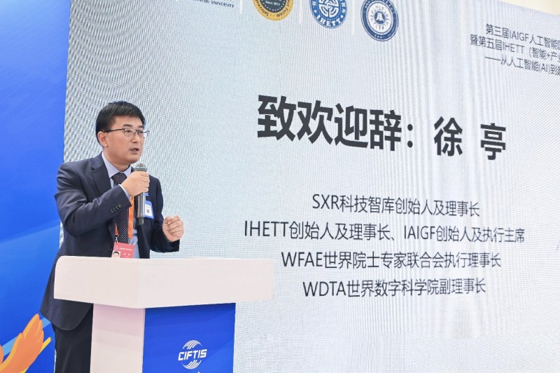 (上图:SXR科技智库创始人及理事长、IHETT创始人及理事长、IAIGF创始人及执行主席、世界数字科学院副理事长徐亭先生致欢迎辞)