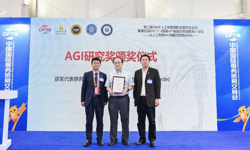 【上图:SAI强人工智能(左右脑 AI) 之父、人工智能战略科学家高振宇博士(中)获得“2025第三届 AGI研究奖”】