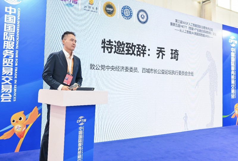 (上图:致公党中央经济委委员、百城市长公益论坛执行委员会主任乔琦在特邀致辞中强调,人工智能不仅是技术问题,更是经济社会发展的系统性工程。他呼吁加强政策引导与产业协同,推动AI技术下沉至城市治理、公共服务、乡村振兴等广泛场景,真正实现“智能向善”)