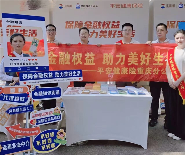 在启动仪式上,平安健康险重庆分公司积极围绕“保障金融权益,助力美好生活”活动主题,通过特色展位、金融知识宣传角等专属区域,点对点解答群众健康知识、理赔流程、服务管理等时下热点话题,解决市民疑虑。同时,积极普及各类金融产品的基础知识,帮助市民掌握产品特点,了解金融营销中常见的风险点和易受误导环节,引导消费者树立理性消费和投资观念,理性选择适合自己的金融产品,远离虚假宣传、非法中介、非法金融和电信诈骗等活动侵害。