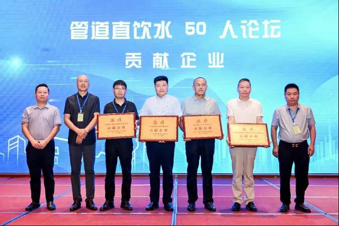 “D50”管道直饮水50人论坛由协会和专家、企业共同发起。会上为直饮水50人论坛做出积极贡献的企业代表授牌。济南嘉尼特环保水处理设备有限公司、宁波贝立欧仪表科技有限公司、徐州同乐管业有限公司、山东润悦水务有限公司表彰授予直饮水50人论坛贡献企业。