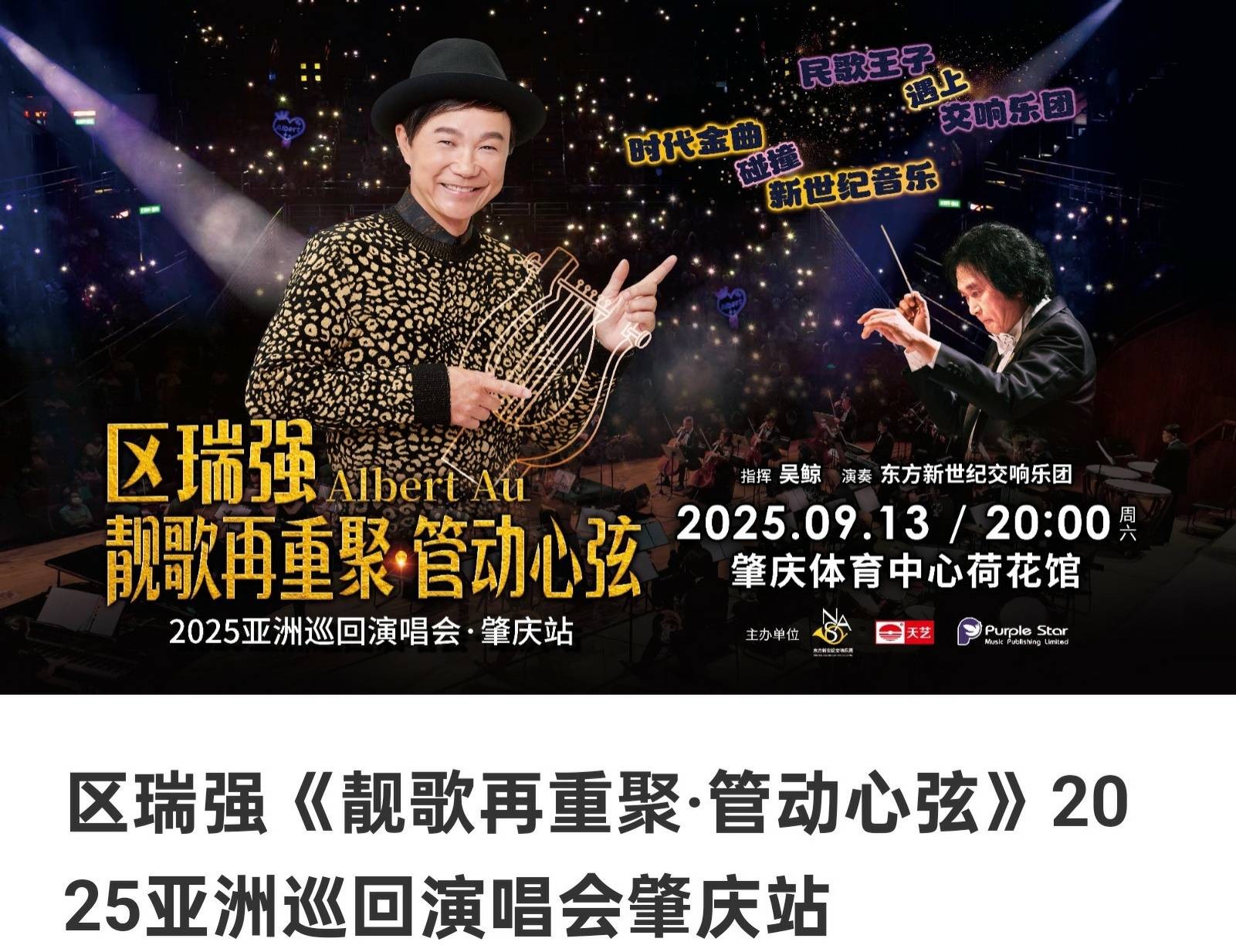 9月13日晚,香港民歌王子区瑞强携东方新世纪交响乐团、新生代治愈系音乐人姚心悦Yara,在故乡肇庆体育中心体育馆展开一幅声情交融的音乐画卷。