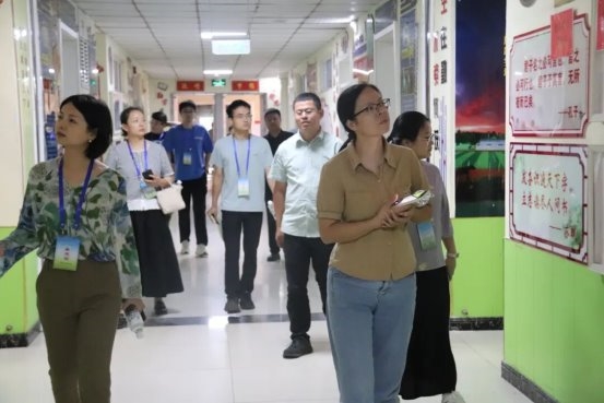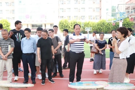 进入校园后,朱大浩一行参观了以科技为主题的楼道文化,奋进钟表、追梦人、情深石等内涵丰富的文化景观,以及学生自我教育的诚信厅、成长墙等,并观摩了激情跑操、课前励志等活动。