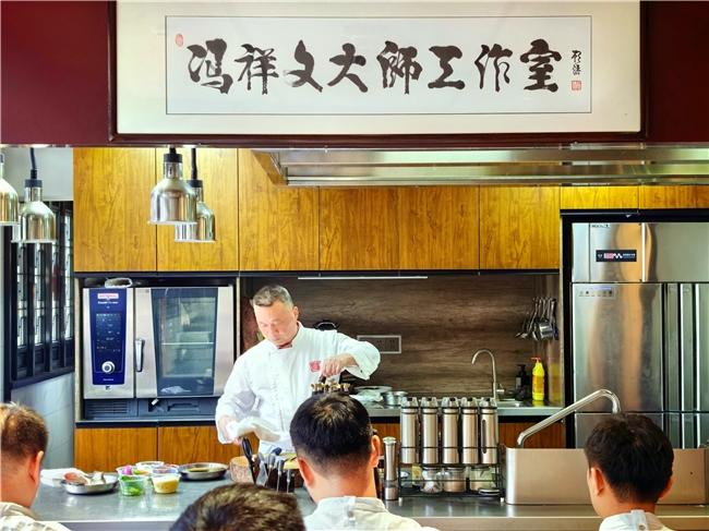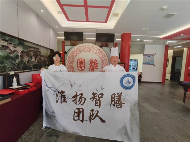 “淮扬智膳”团队在“淮园”戏曲茶楼实地学习“中国烹饪大师”曹乃荣制作菜品
