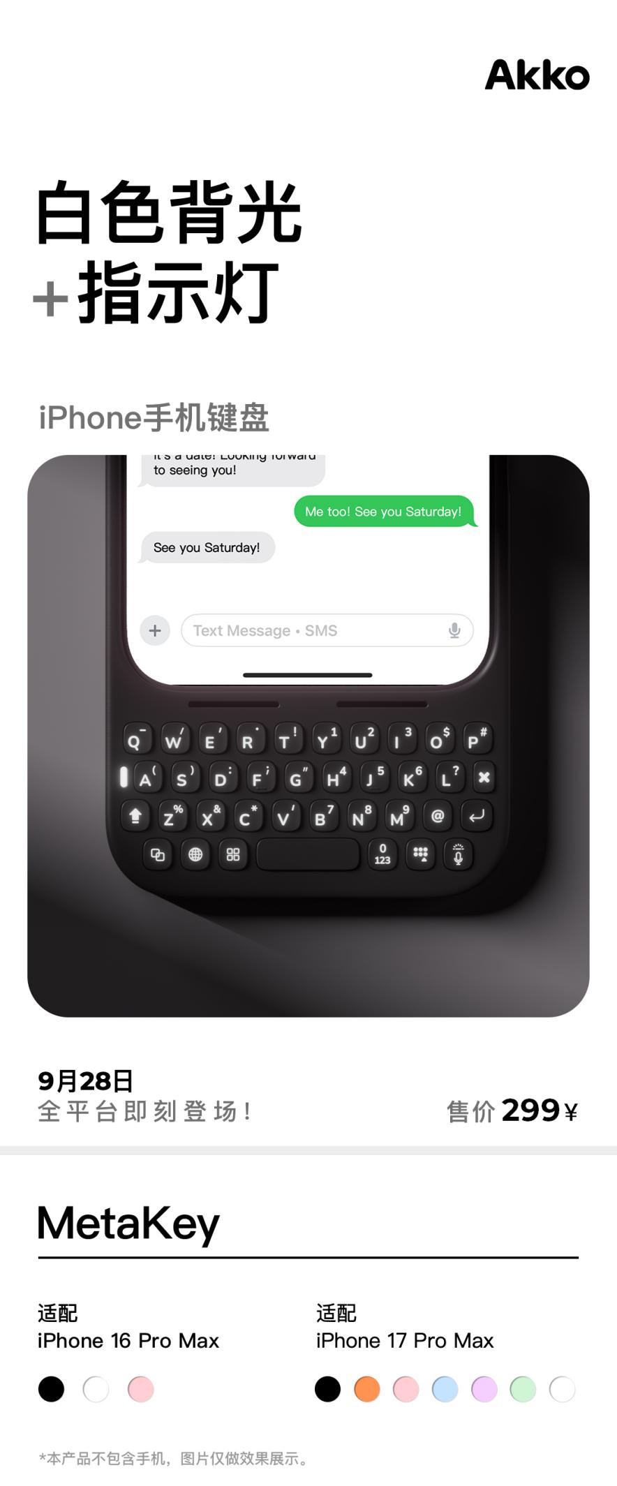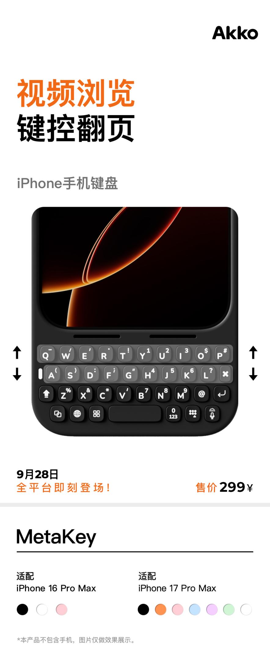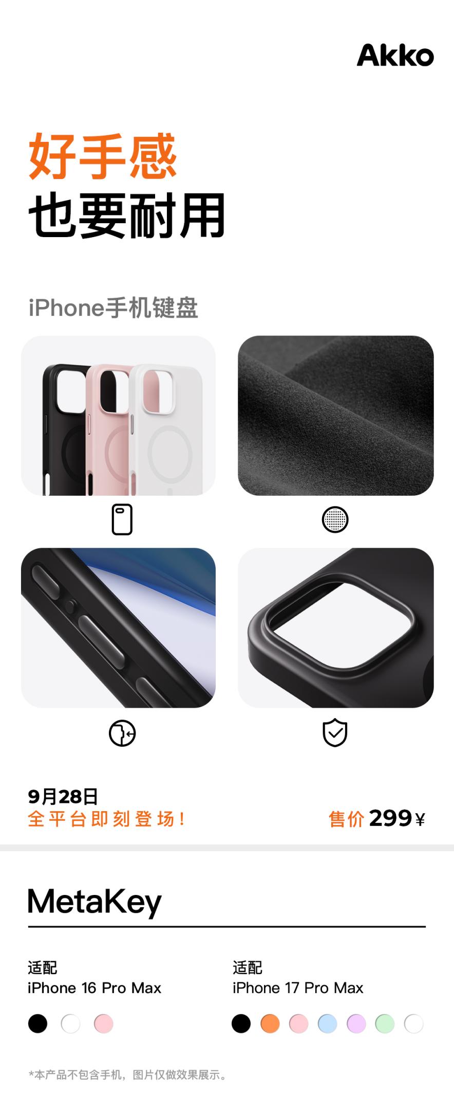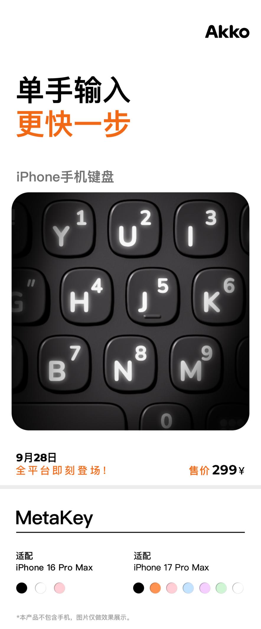 如果你总觉得手机屏幕触控打字少了点「感觉」,Akko新推出的MetaKey物理键盘手机壳,可能就是你的下一件潮流玩具。专为iPhone 16/17 Pro Max打造,把经典的实体键盘“粘”在了手机上,打字咔嗒手感声控一起满足!